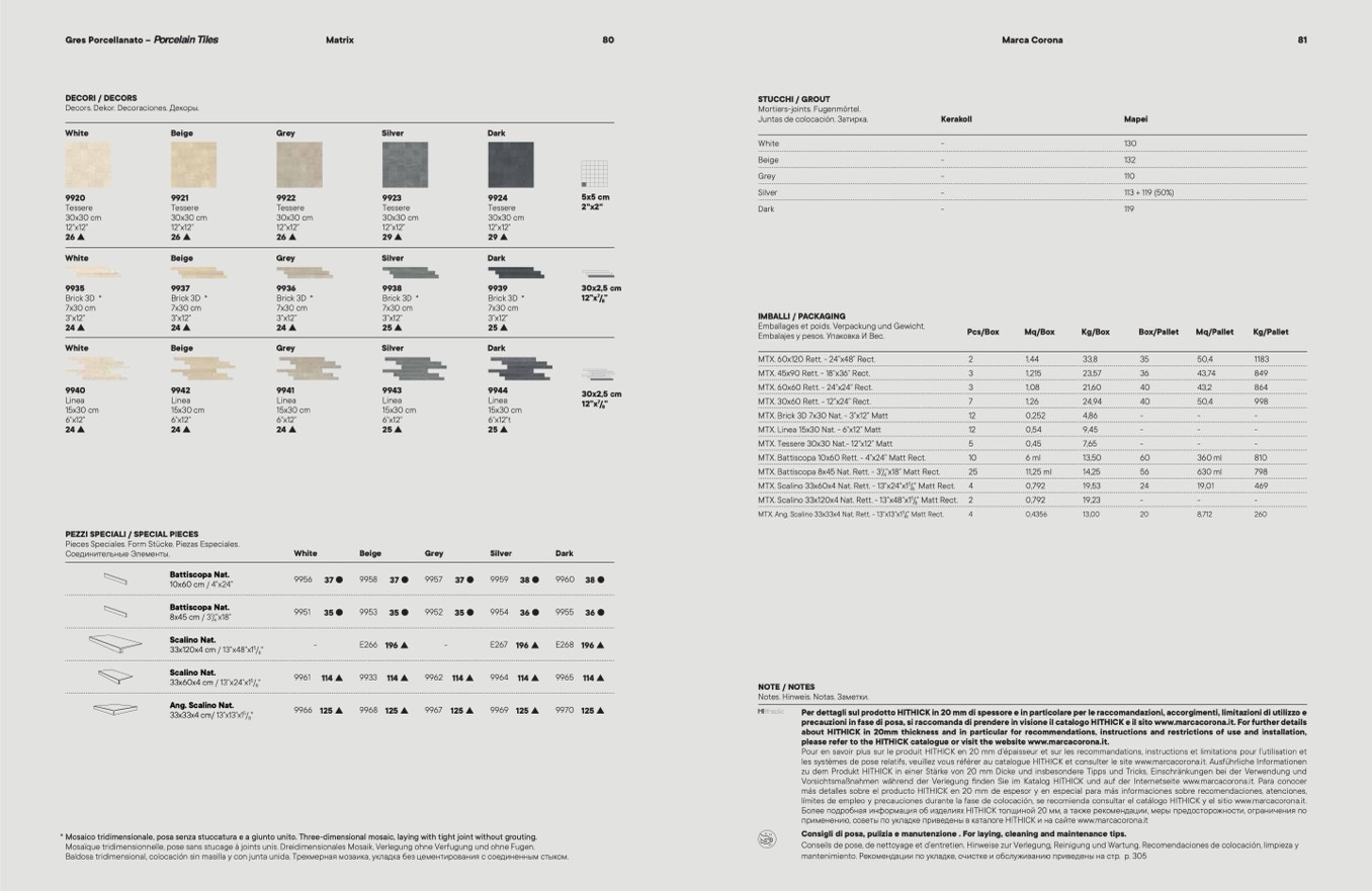 les systèmes de pose relatifs, veuillez vous référer au catalogue HITHICK et consulter le site www.marcacorona.it. Ausführliche Informationen