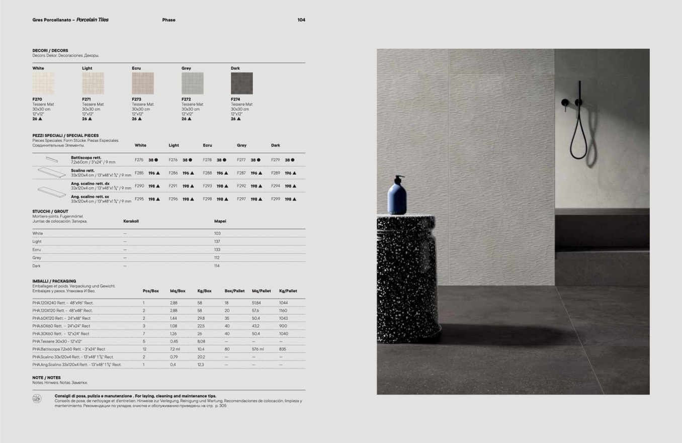 Consigli di posa, pulizia e manutenzione . For laying, cleaning and maintenance tips.