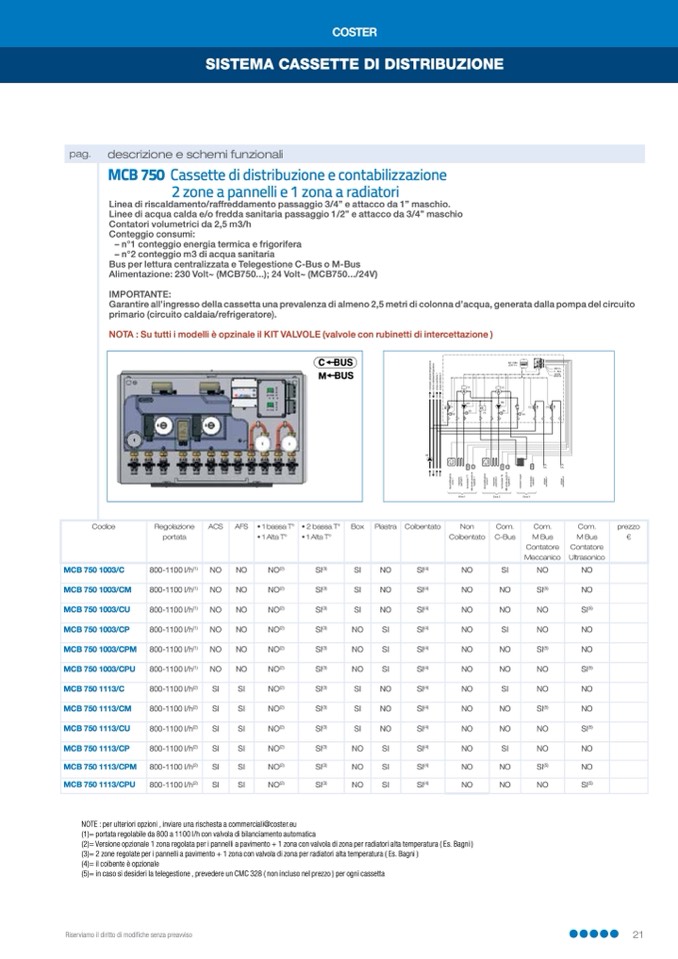NOTE : per ulteriori opzioni , inviare una rischesta a commerciali@coster.eu