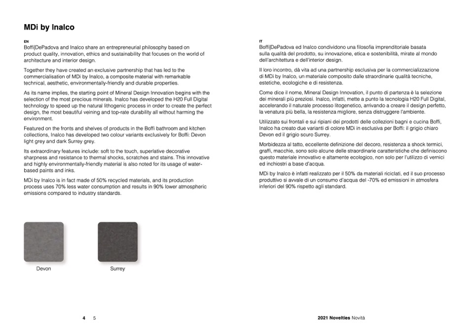 Inalco ha creato due varianti di colore MDi in esclusiva per Boffi: il grigio chiaro