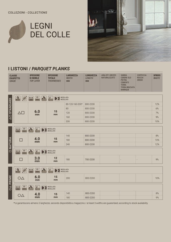 * si garantiscono almeno 3 larghezze, secondo disponibilità a magazzino / at least 3 widths are guaranteed, according to stock availability