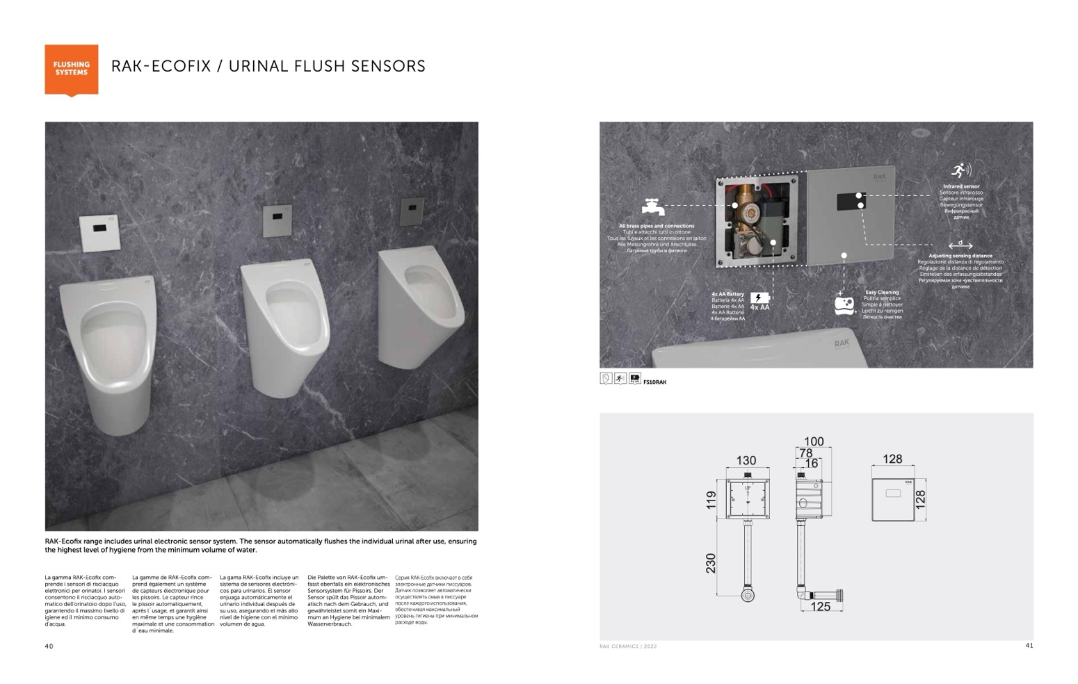RAK-Ecofix range includes urinal electronic sensor system. The sensor automatically flushes the individual urinal after use, ensuring