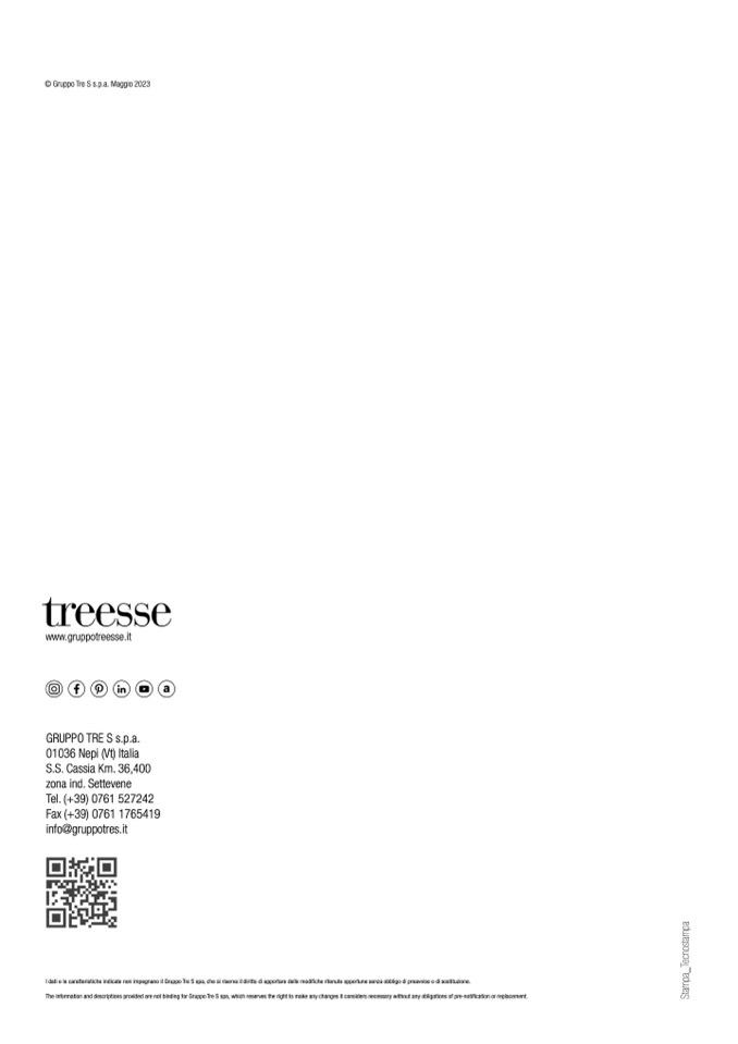 The information and descriptions provided are not binding for Gruppo Tre S spa, which reserves the right to make any changes it considers necessary without any obligations of pre-notification or replacement.