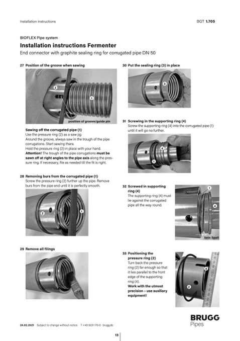 Screw the supporting ring (4) into the corrugated pipe (1)