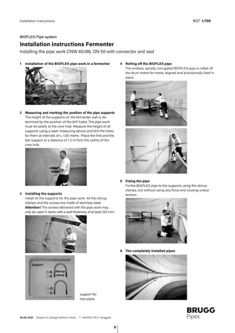 1 Installation of the BIOFLEX pipe work in a fermenter