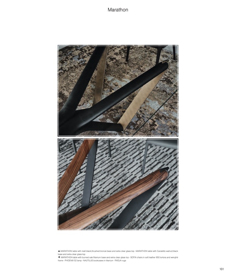 MARATHON table with matt black/brushed bronze base and extra clear glass top - MARATHON table with Canaletto walnut/black