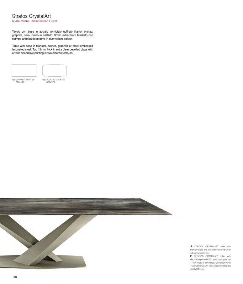 lacquered steel. Top 12mm thick in extra clear bevelled glass with