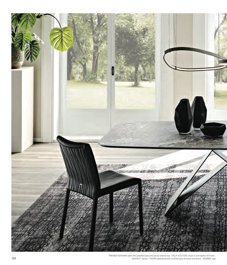 PREMIER KERAMIK table with graphite base and arenal ceramic top - ITALIA COUTURE chairs in soft leather 973 nero -
