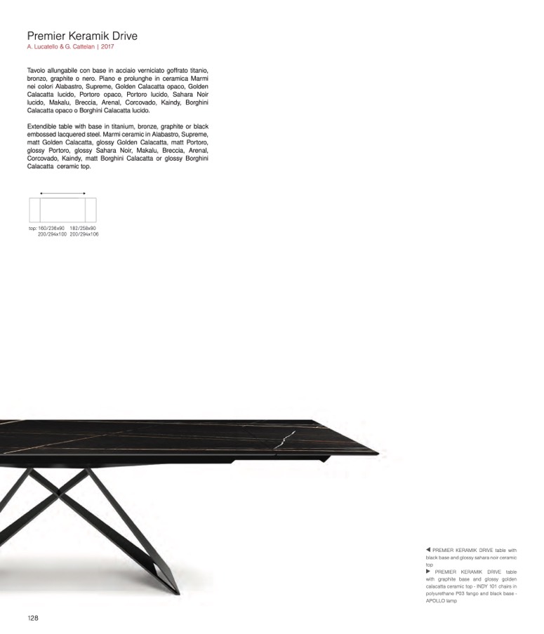 bronzo, graphite o nero. Piano e prolunghe in ceramica Marmi