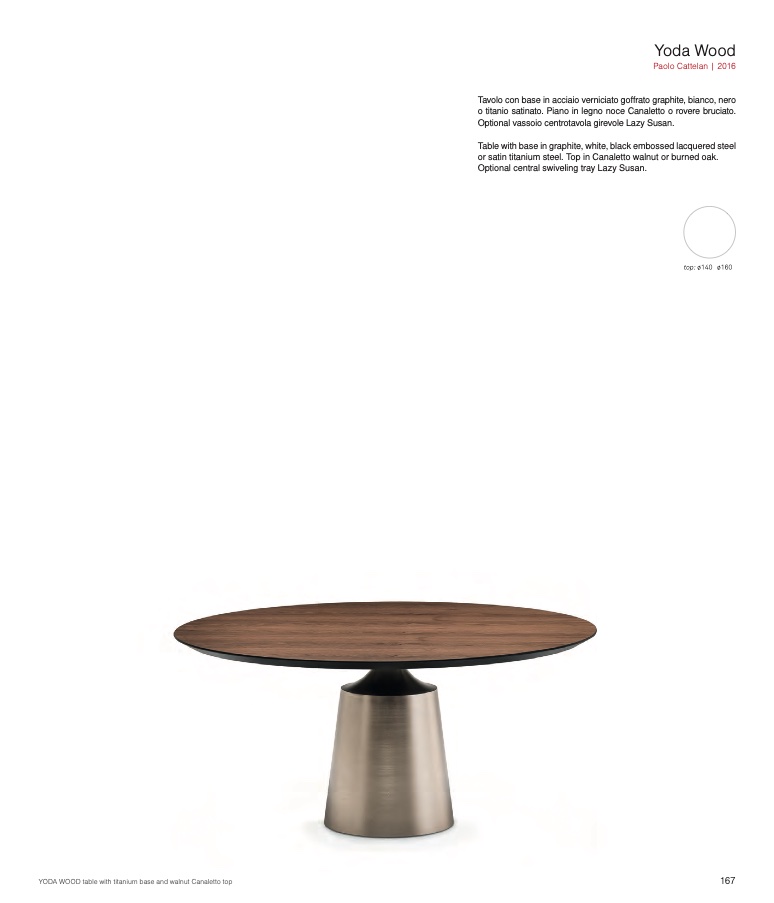 or satin titanium steel. Top in Canaletto walnut or burned oak.