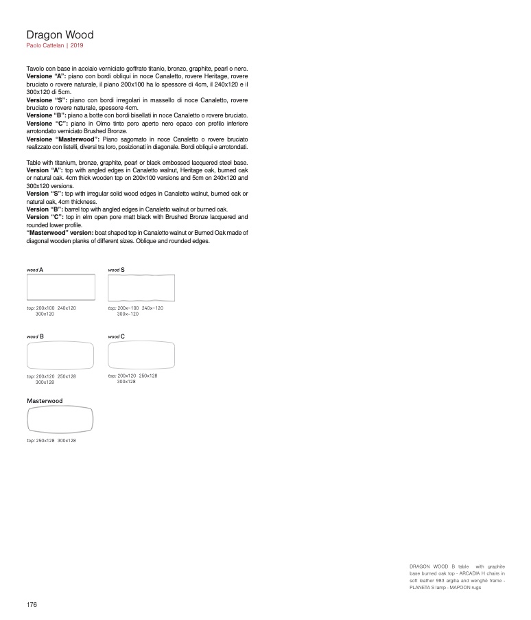 “Masterwood” version: boat shaped top in Canaletto walnut or Burned Oak made of