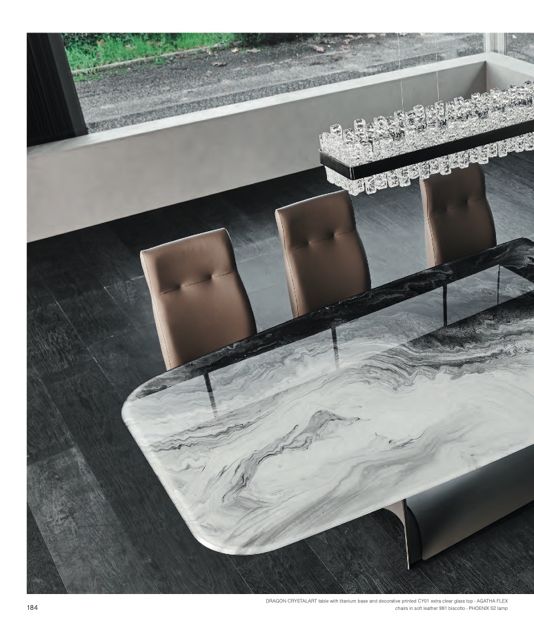 DRAGON CRYSTALART table with titanium base and decorative printed CY01 extra clear glass top - AGATHA FLEX