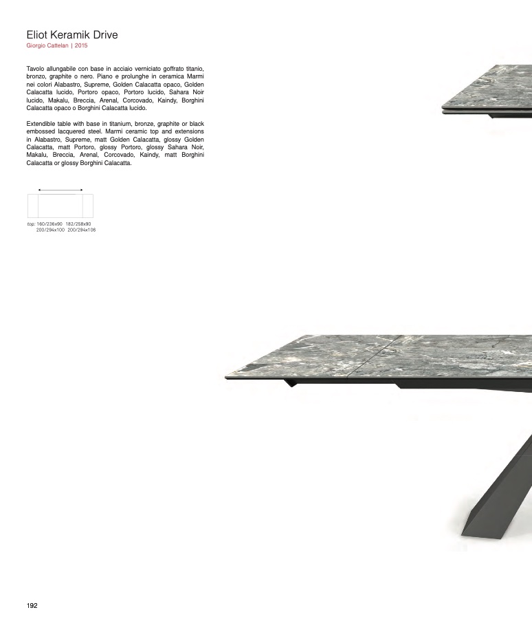 embossed lacquered steel. Marmi ceramic top and extensions