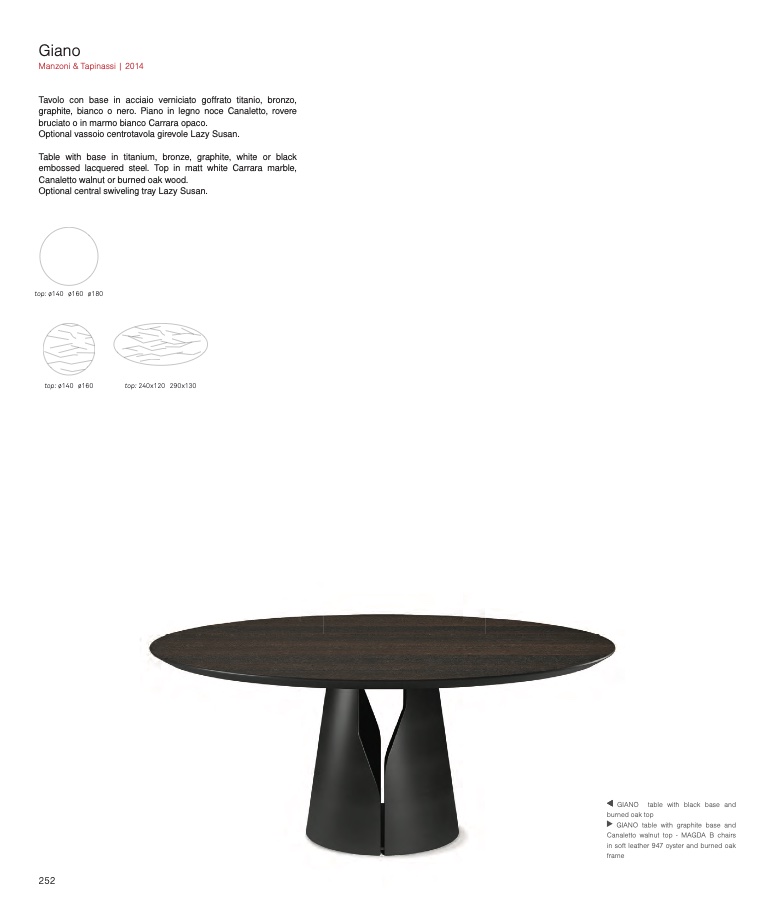 Table with base in titanium, bronze, graphite, white or black