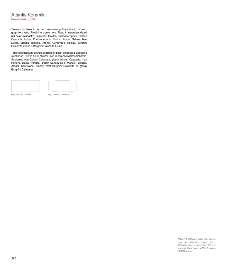 steel base. Feet in black chrome. Top in ceramic Marmi Alabastro,