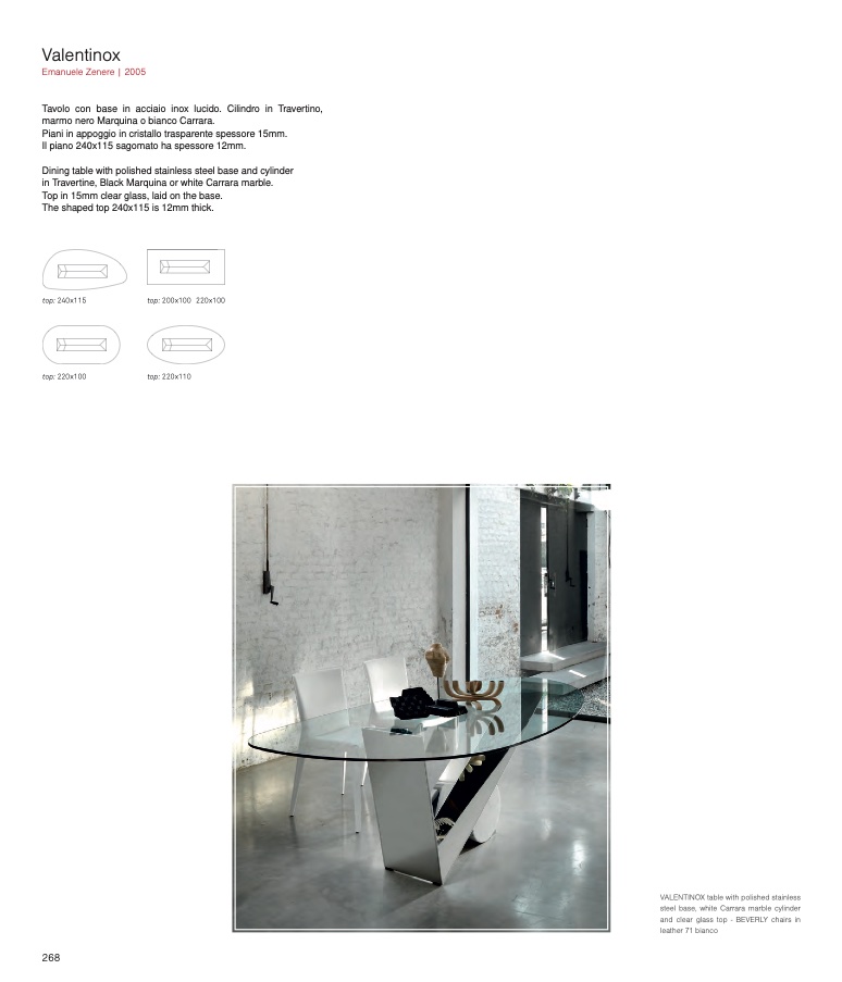 Tavolo con base in acciaio inox lucido. Cilindro in Travertino,