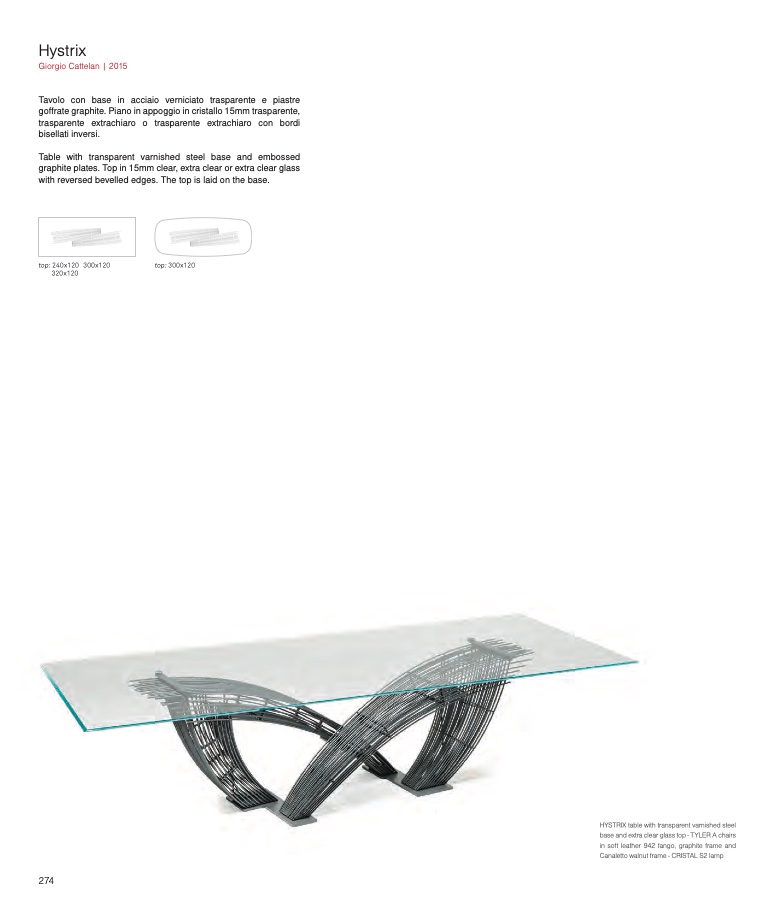 HYSTRIX table with transparent varnished steel