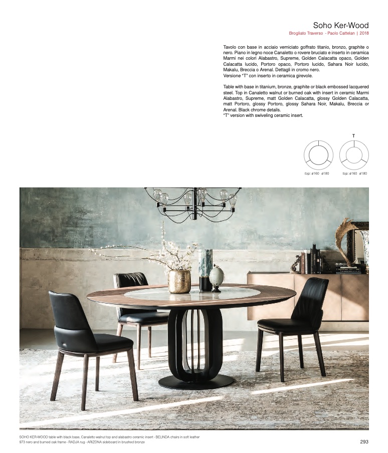 SOHO KER-WOOD table with black base, Canaletto walnut top and alabastro ceramic insert - BELINDA chairs in soft leather