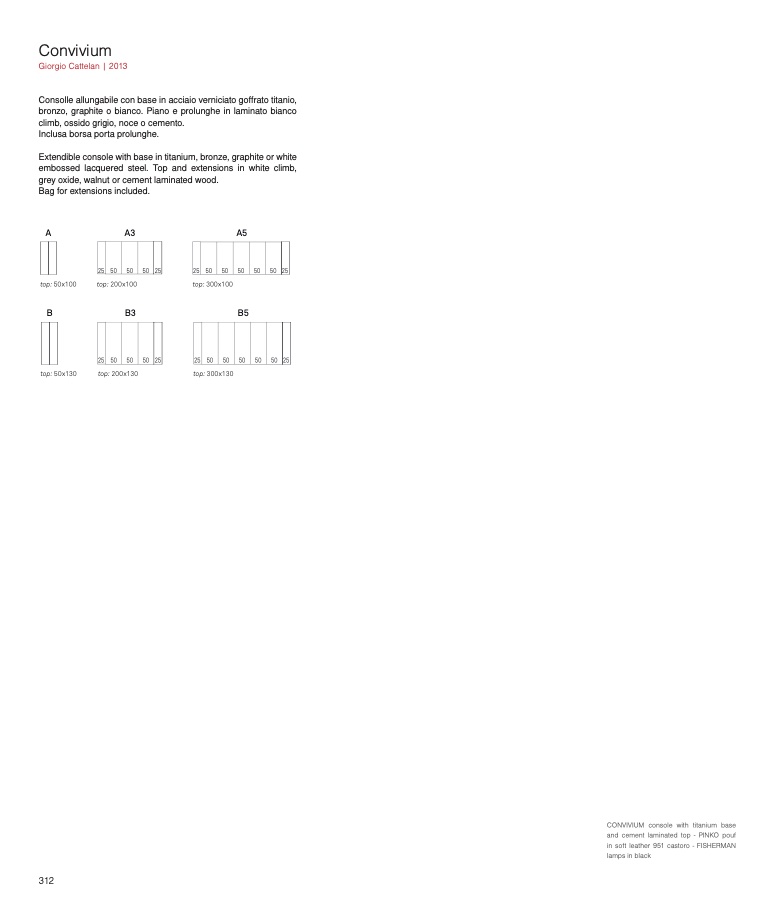 bronzo, graphite o bianco. Piano e prolunghe in laminato bianco