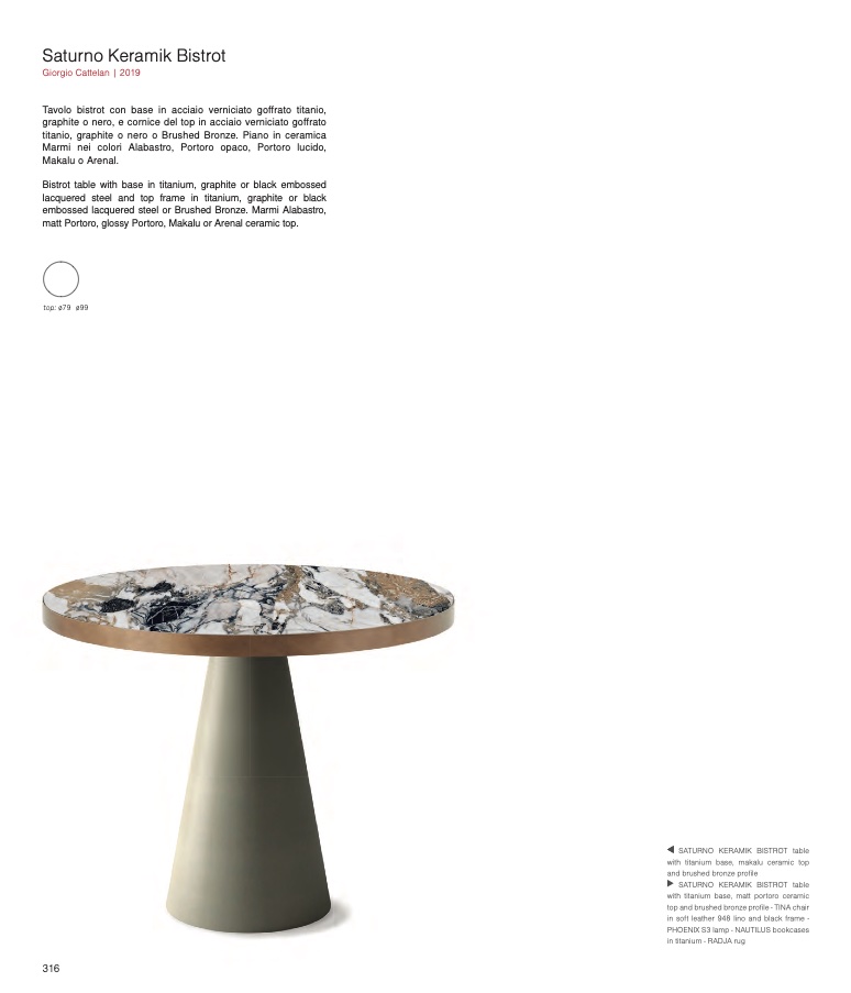 titanio, graphite o nero o Brushed Bronze. Piano in ceramica