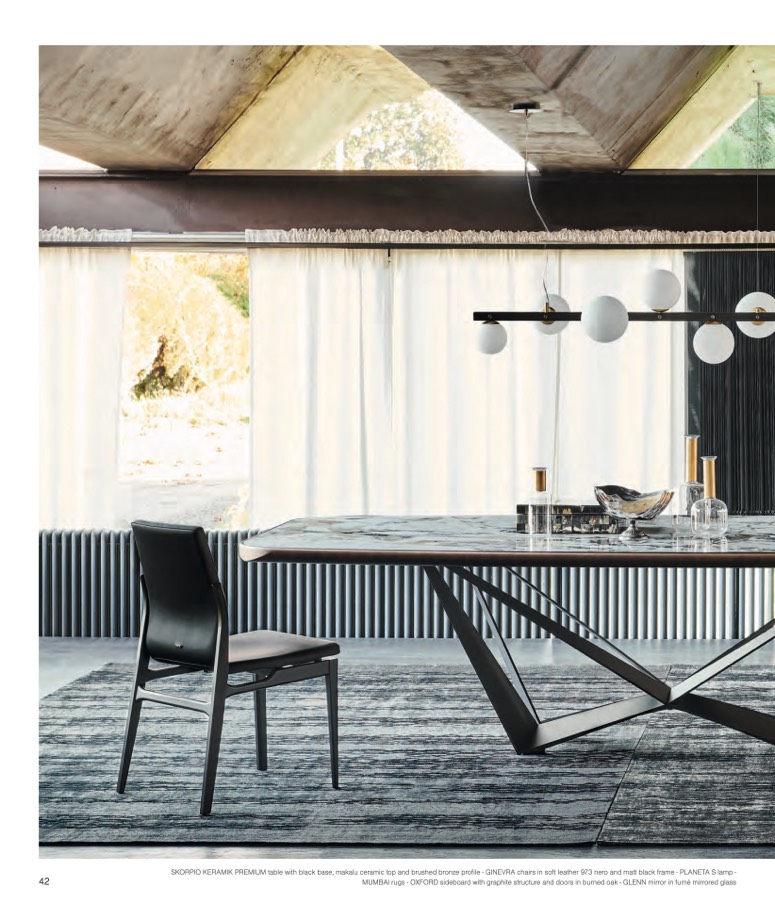 file - GINEVRA chairs in soft leather 973 nero and matt black frame - PLANETA S lamp -
