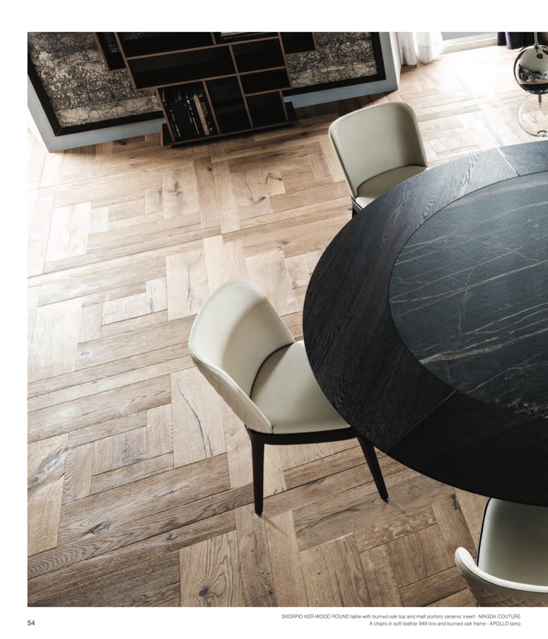 SKORPIO KER-WOOD ROUND table with burned oak top and matt portoro ceramic insert - MAGDA COUTURE