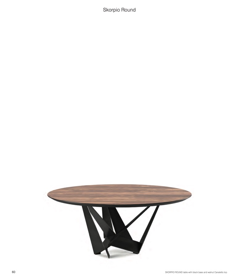 SKORPIO ROUND table with black base and walnut Canaletto top