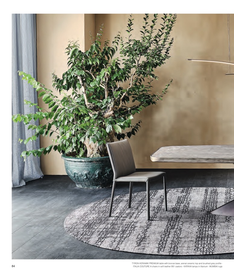ITALIA COUTURE A chairs in soft leather 951 castoro - KATANA lamps in titanium - MUMBAI rugs