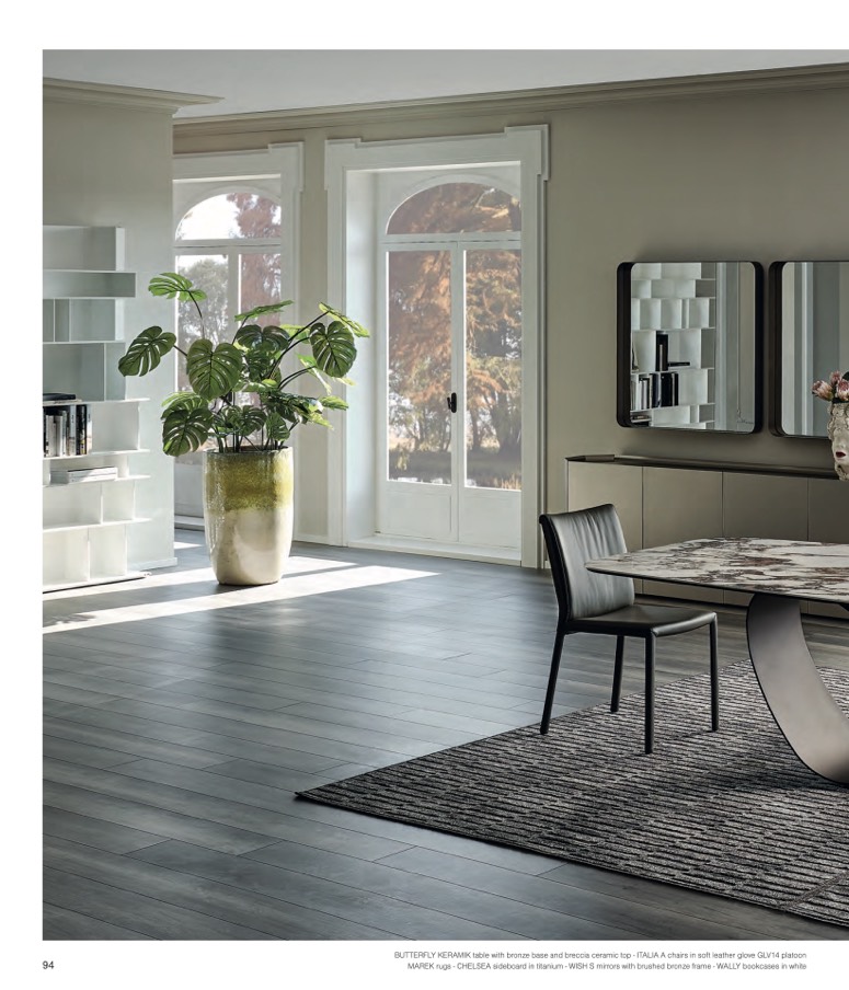 MAREK rugs - CHELSEA sideboard in titanium - WISH S mirrors with brushed bronze frame - WALLY bookcases in white