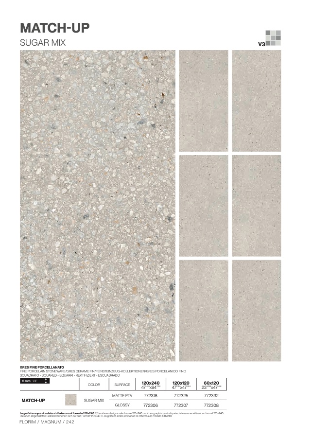 Le grafiche sopra riportate si riferiscono al formato 120x240 / The above designs refer to size 120x240 cm / Les graphismes indiqués ci-dessus se réfèrent au format 120x24