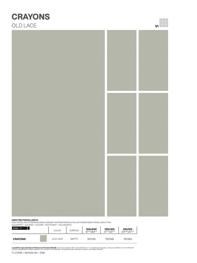 Le grafiche sopra riportate si riferiscono al formato 120x240 / The above designs refer to size 120x240 cm / Les graphismes indiqués ci-dessus se réfèrent au format 120x24