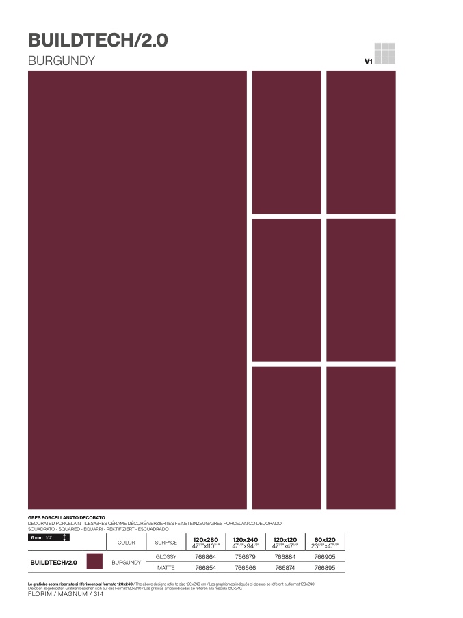 Le grafiche sopra riportate si riferiscono al formato 120x240 / The above designs refer to size 120x240 cm / Les graphismes indiqués ci-dessus se réfèrent au format 120x24