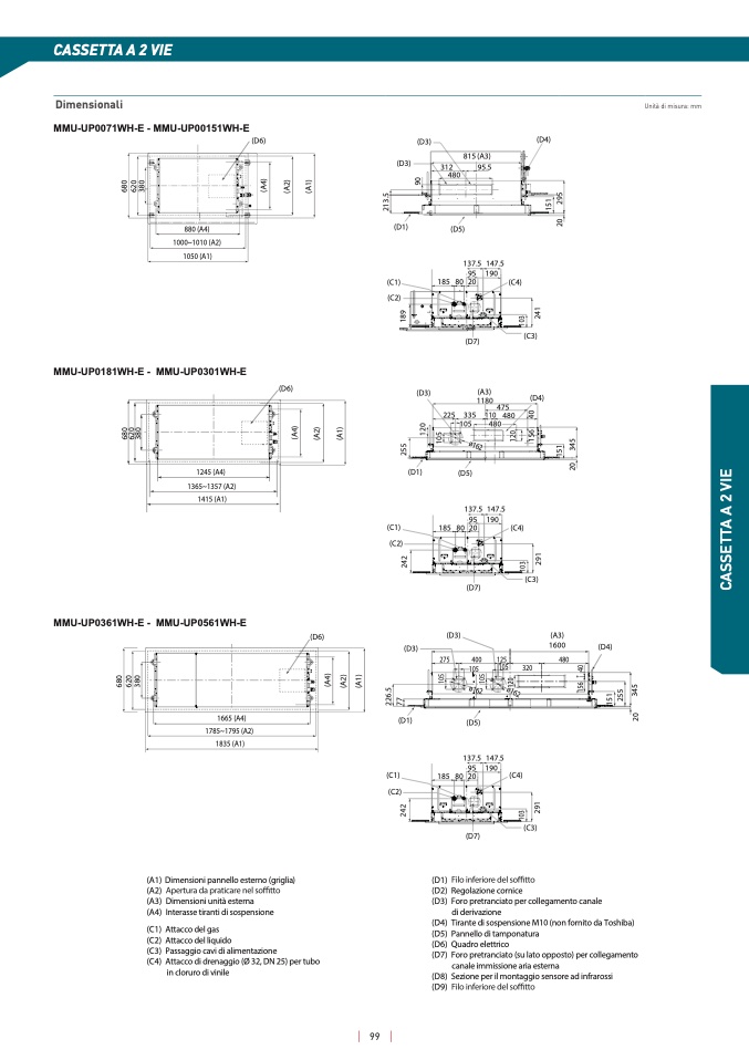 Tirante di sospensione M10 (non fornito da Toshiba)