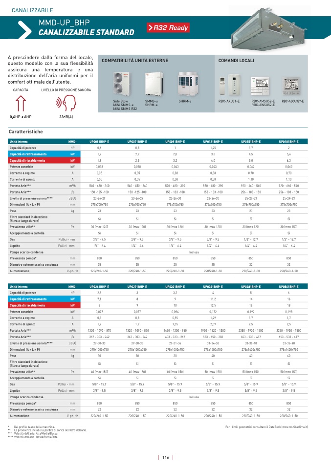 Per i limiti geometrici consultare il DataBook (www.toshibaclima.it