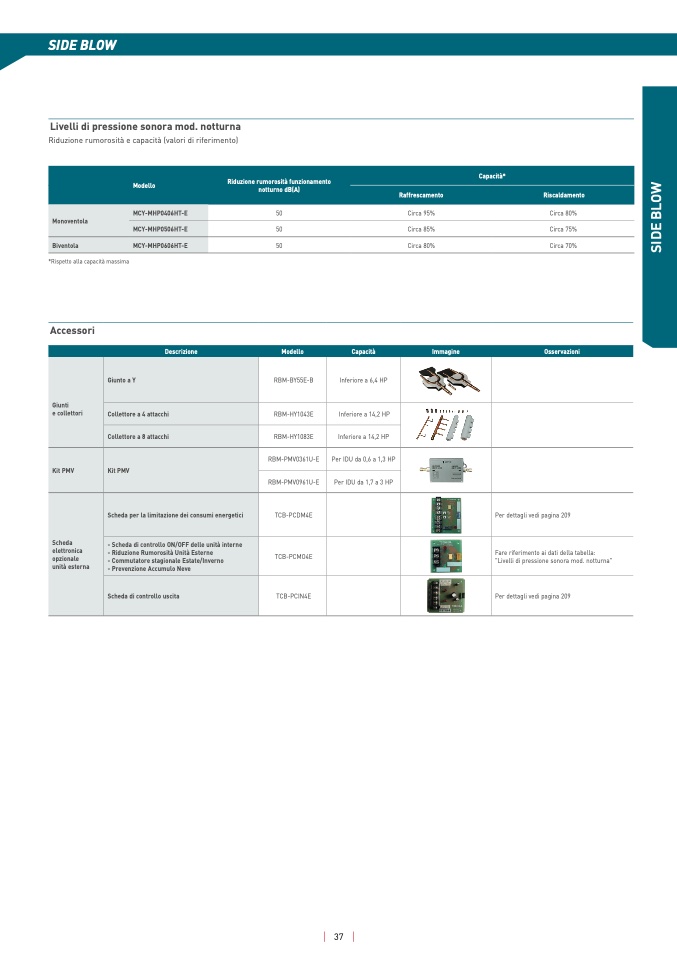 Riduzione rumorosità e capacità (valori di riferimento