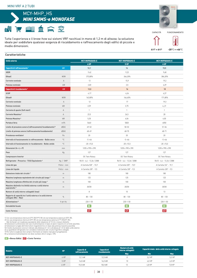 6) La quantità di refrigerante non considera l’estensione del circuito frigorifero collegato