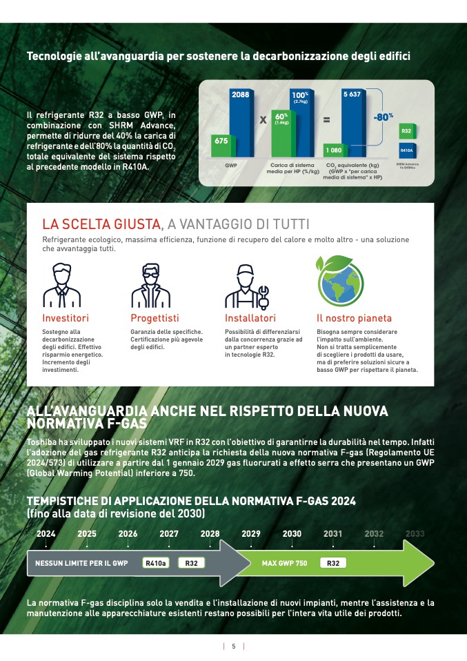 Toshiba ha sviluppato i nuovi sistemi VRF in R32 con l’obiettivo di garantirne la durabilità nel tempo. Infatt
