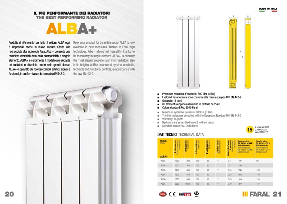 The thermal power complies with the European Standard UNI EN 442-2