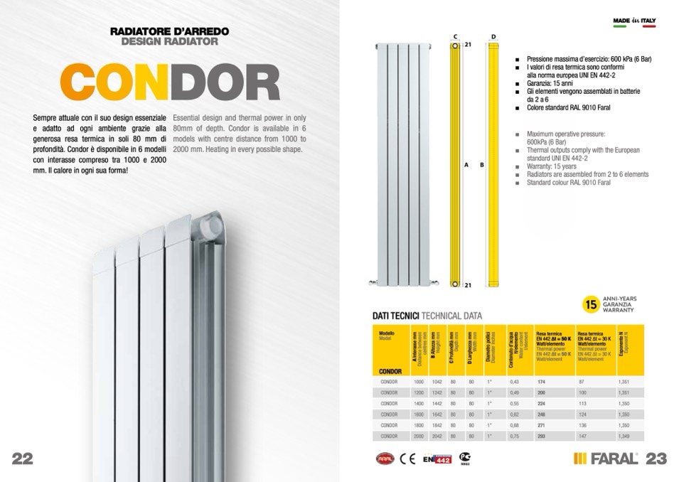 profondità. Condor è disponibile in 6 modelli