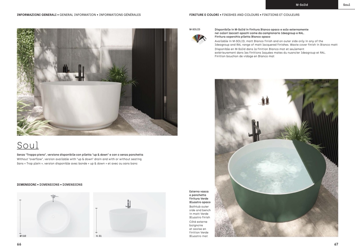 Ideagroup and RAL range of matt lacquered finishes. Waste cover finish in Bianco matt