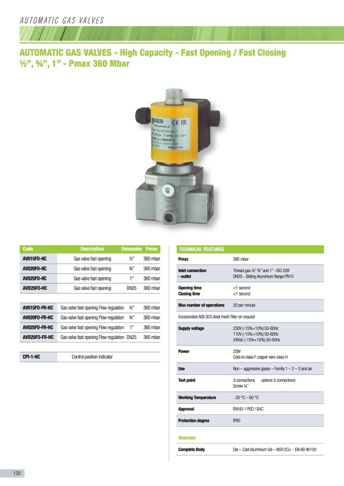 Non – aggressive gases – Family 1 – 2 – 3 and air