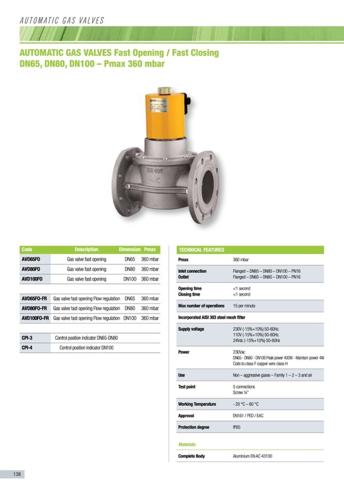 Non – aggressive gases – Family 1 – 2 – 3 and air