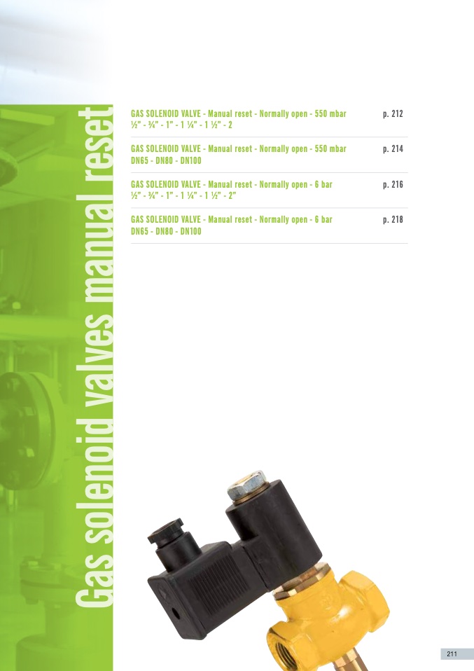 Gas solenoid valve - manual reset - normally open - 6 bar