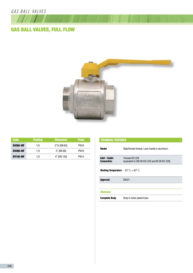 Male/female threads. Lever handle in aluminium.