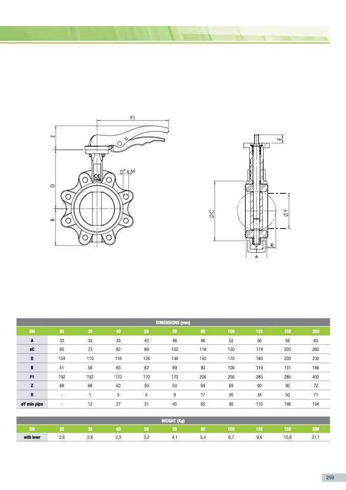 NOTE: valves with EPDM, NBR and FKM ≥ DN 300 and those with PTFE ≥ DN 125 will be supplied with MANUAL REDUCER