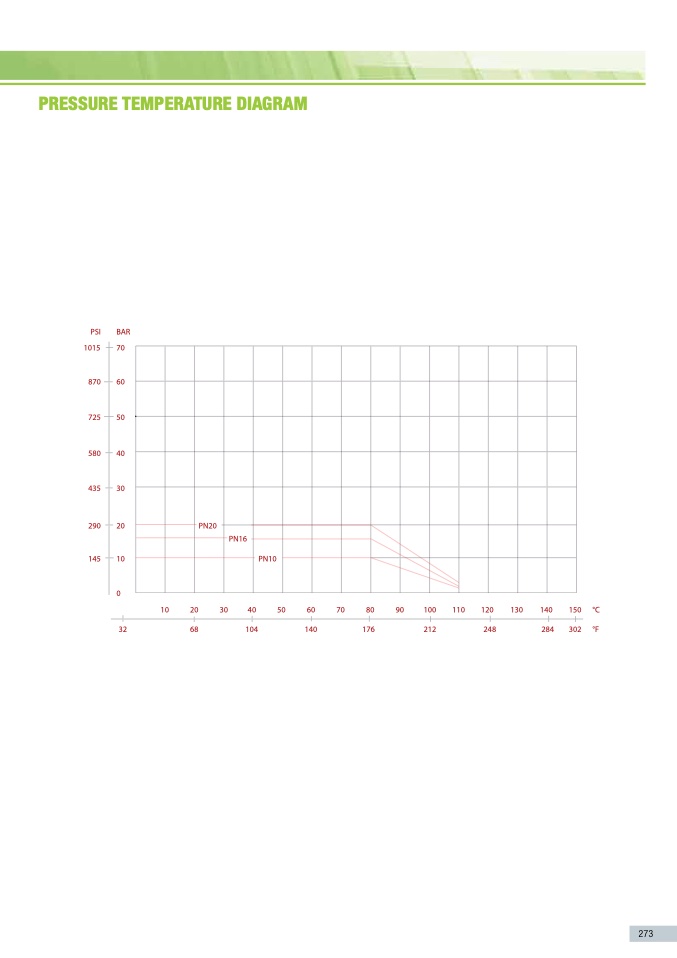 The values shown by the dropping lines state the maximum limit of employment of the valves.