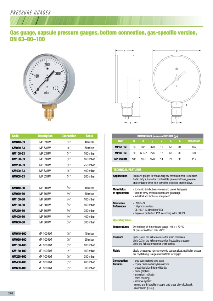 Pressure gauges for measuring low pressures (max. 600 mbar).