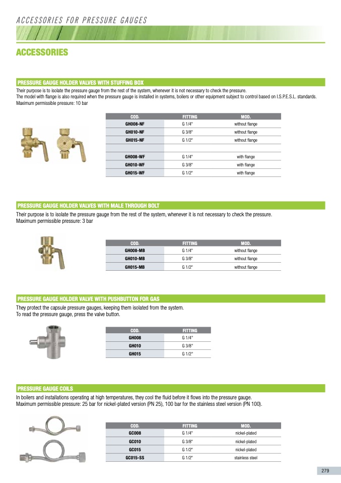 prEssurE GauGE HolDEr ValVEs wITH malE THrouGH bolT