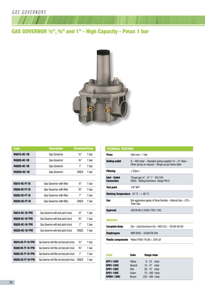 6 – 480 mbar – Standard spring supplied 10 – 27 mbar –