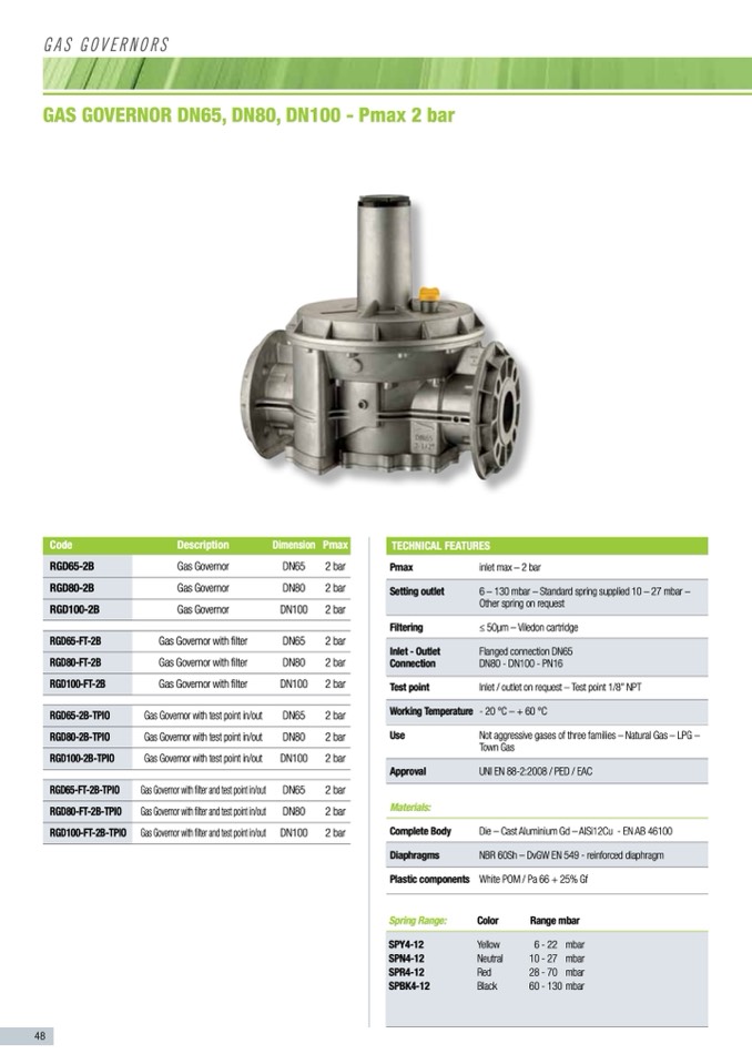 6 – 130 mbar – Standard spring supplied 10 – 27 mbar –